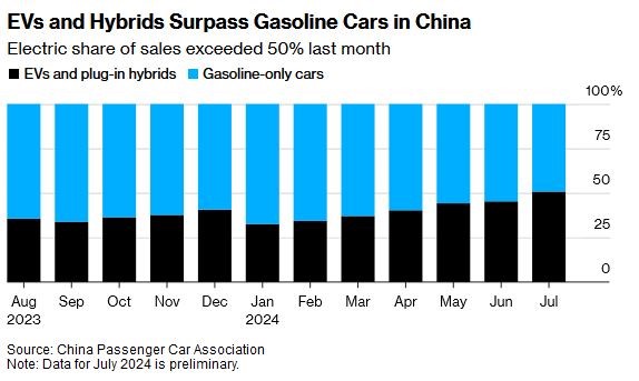 این نقطه عطف نشان میدهد که صنعت خودروهای برقی، حتی با کاهش تقاضا در سایر نقاط جهان همچنان در چین رو به رشد است. مدیرعامل شرکت بیوایدی، بزرگترین تولیدکننده خودروهای برقی و هیبریدی در جهان، پیشبینی کرد که چین به زودی از آستانه ۵۰ درصد فروش فراتر خواهد رفت.