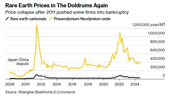 اکثر معادن خاکهای کمیاب در تلاش برای پیشرفت با وجود قیمتهای پایین و کمبود بودجه هستند. این عوامل فشار غرب برای کاهش وابستگی به زنجیره تامین چین را کاهش میدهند.