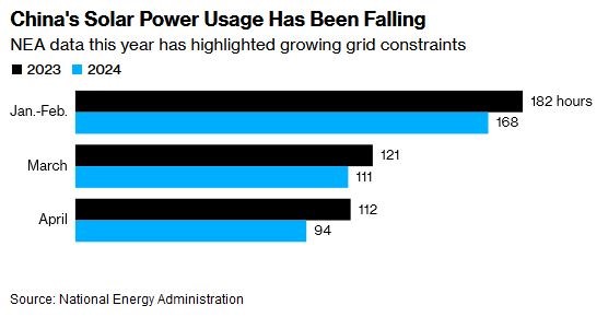 به گزارش بلومبرگ، اداره ملی انرژی چین معمولا هر ماه گزارشی منتشر می‌کند که در بخشی از آن به میزان بهره‌برداری از هر منبع انرژی اشاره می‌شود. در بخش عمده‌ای از سال جاری این گزارشات حاکی از افزایش میزان بهره‌برداری از ظرفیت نیروگاه‌های برق آبی و نیروگاه‌های حرارتی زغال سنگ سوز و در مقابل کاهش بهره‌برداری از پنل‌های خورشیدی بودند، چون برخی اوقات تولید برق در شبکه بیش از حد زیاد می‌شد و لازم بود که در ساعات اوج تولید، پنل‌های خورشیدی خاموش شوند.